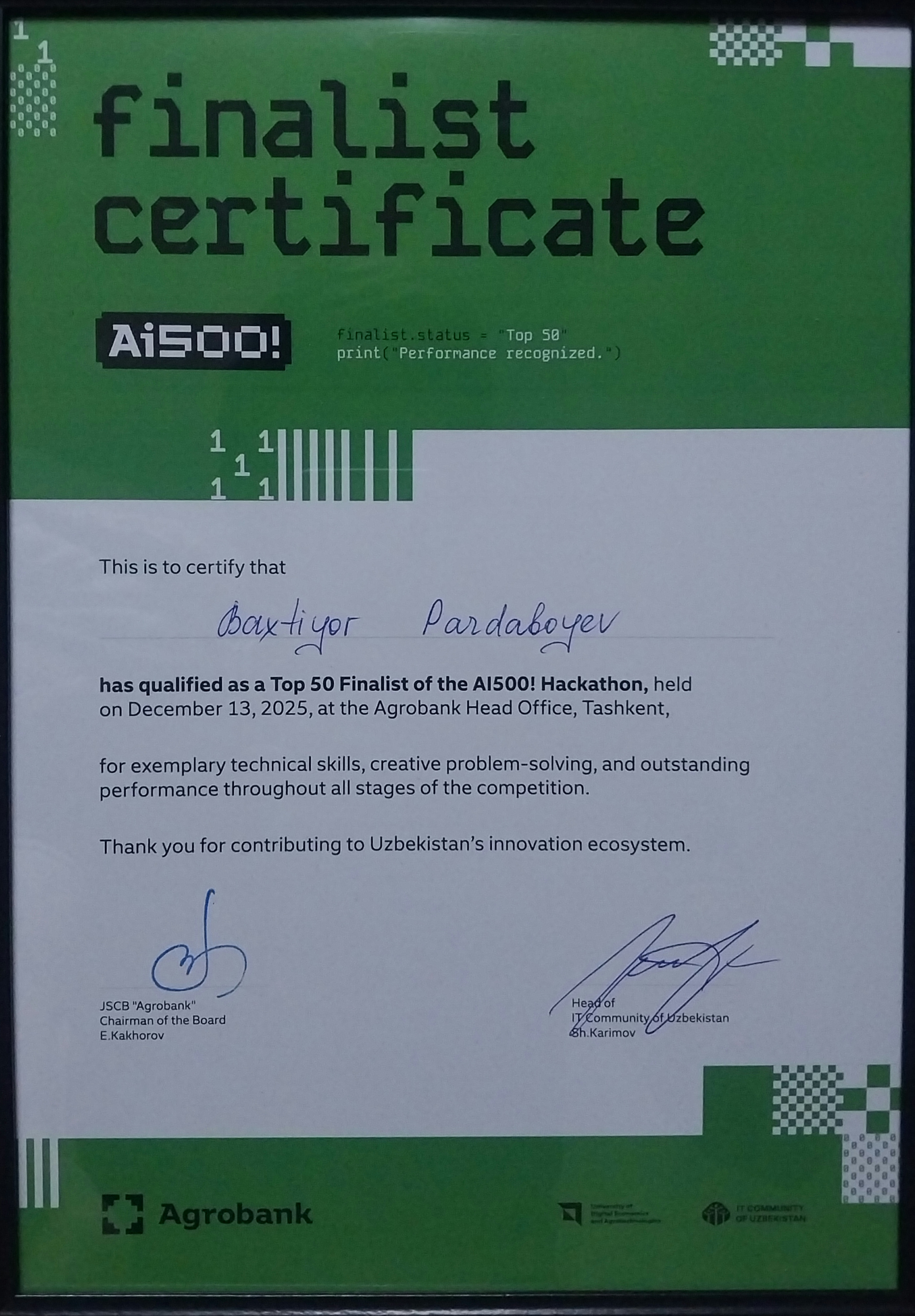 Agrobank & IT Community of Uzbekistan · Dec 2025