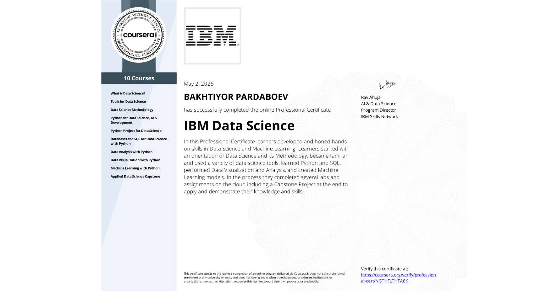 IBM Data Science Professional Certificate