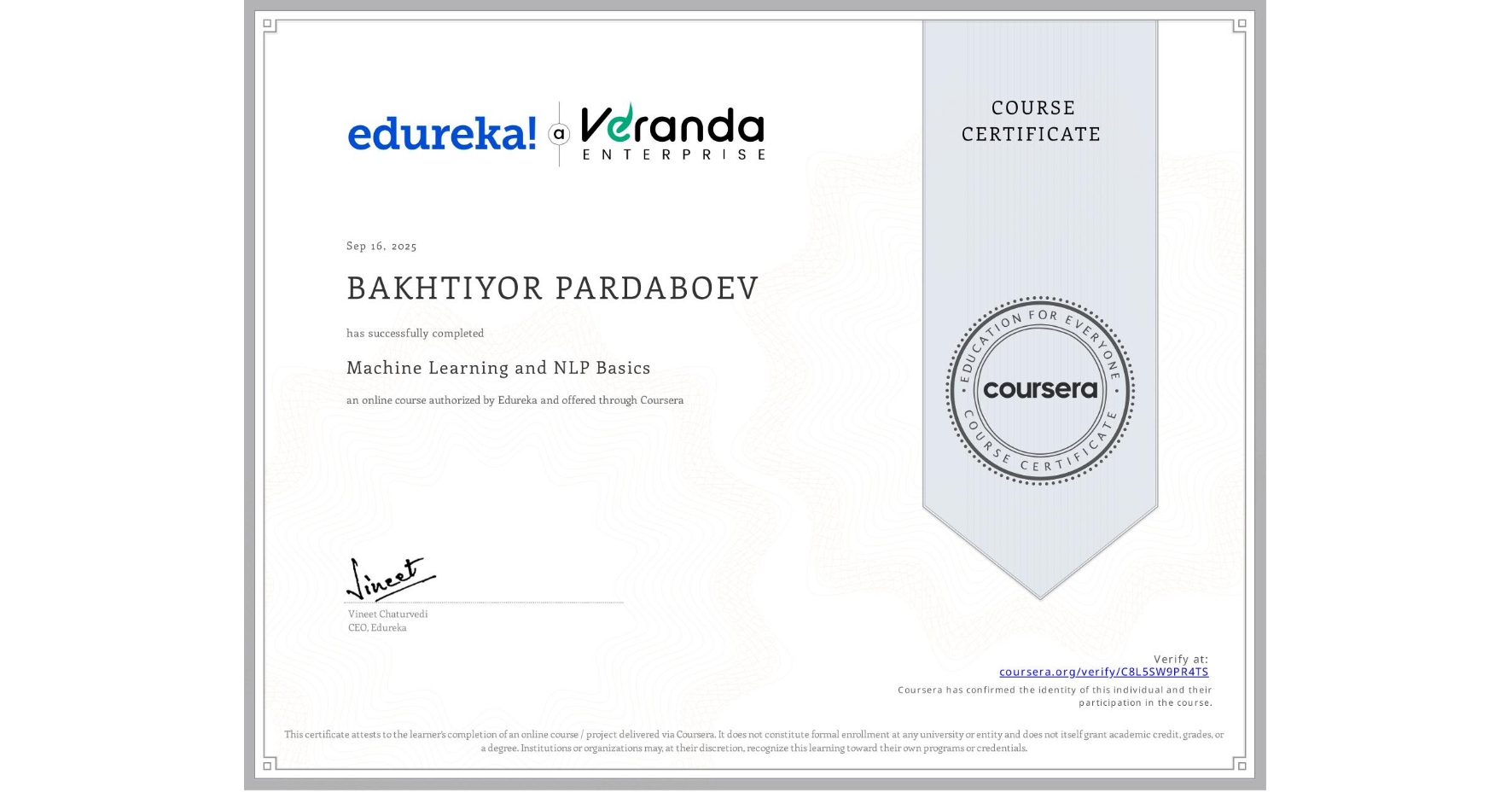 Coursera · Completed Sep 2025