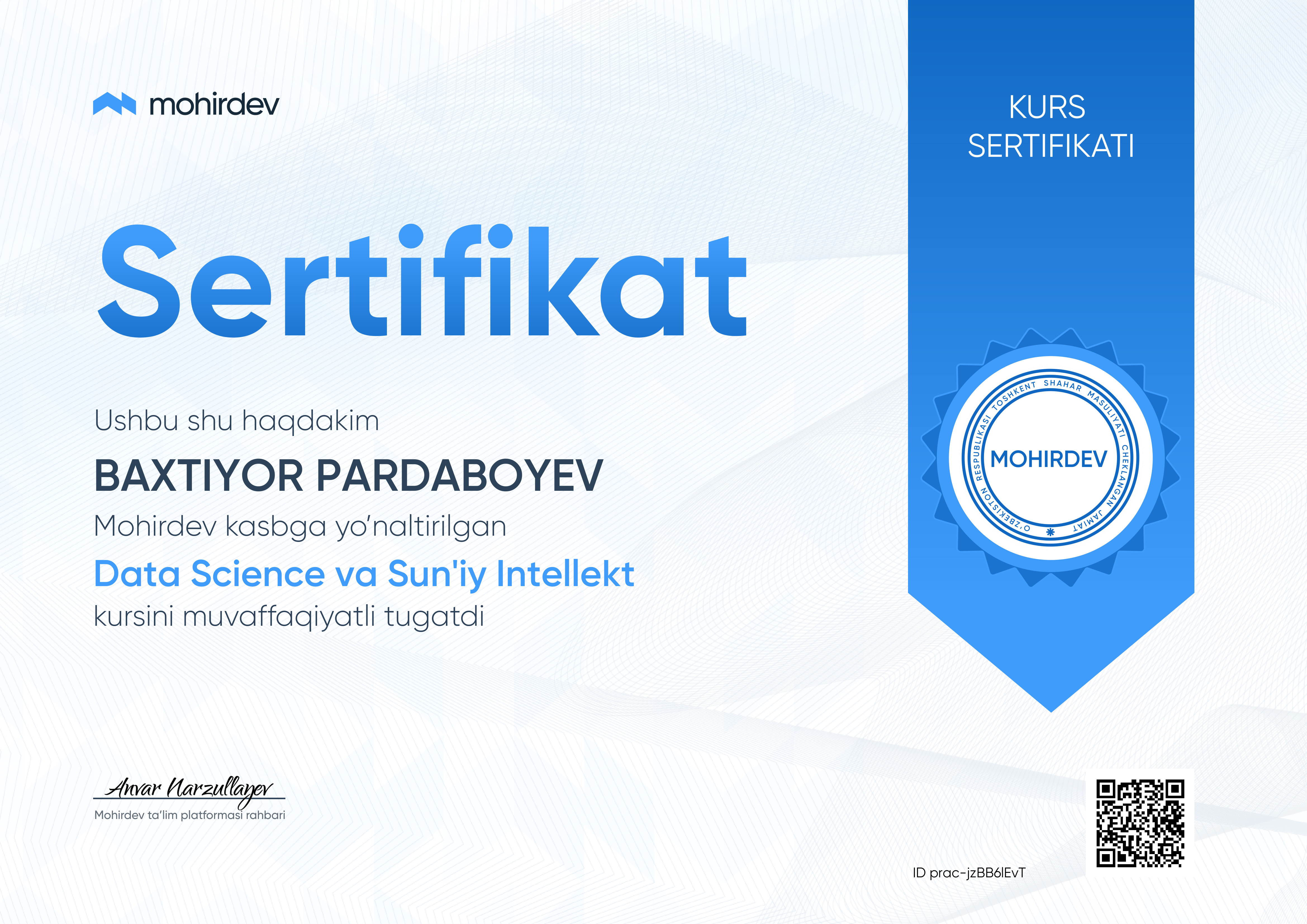 • Name: Baxtiyor Pardaboyev